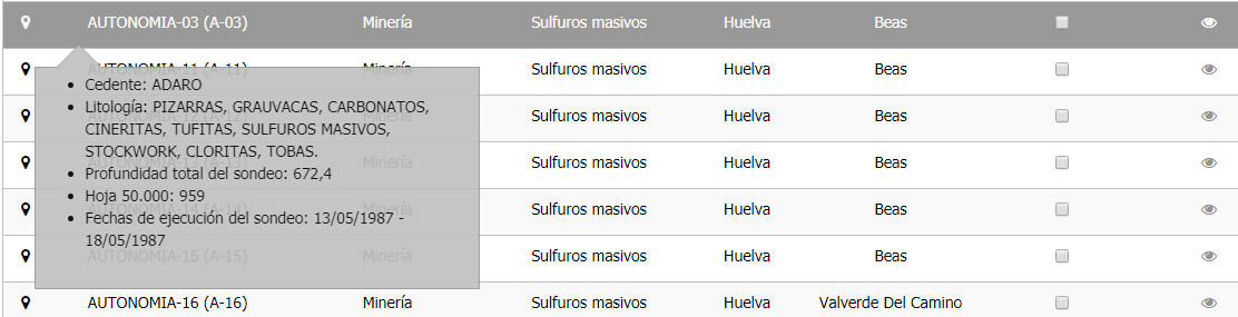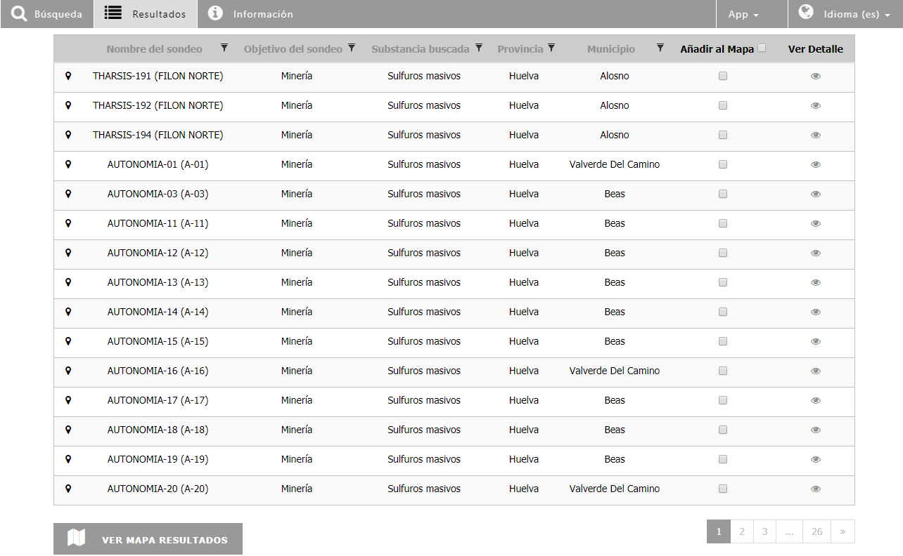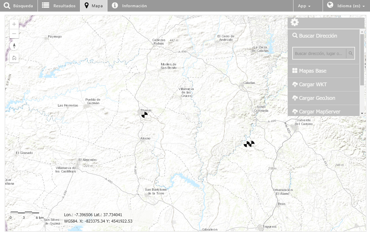A lo largo del tiempo que he trabajado en el IGME, entre otros cometidos he realizado una nueva plantilla para aplicaciones web, con búsqueda, listado de resultados y mapa de resultados seleccionados.